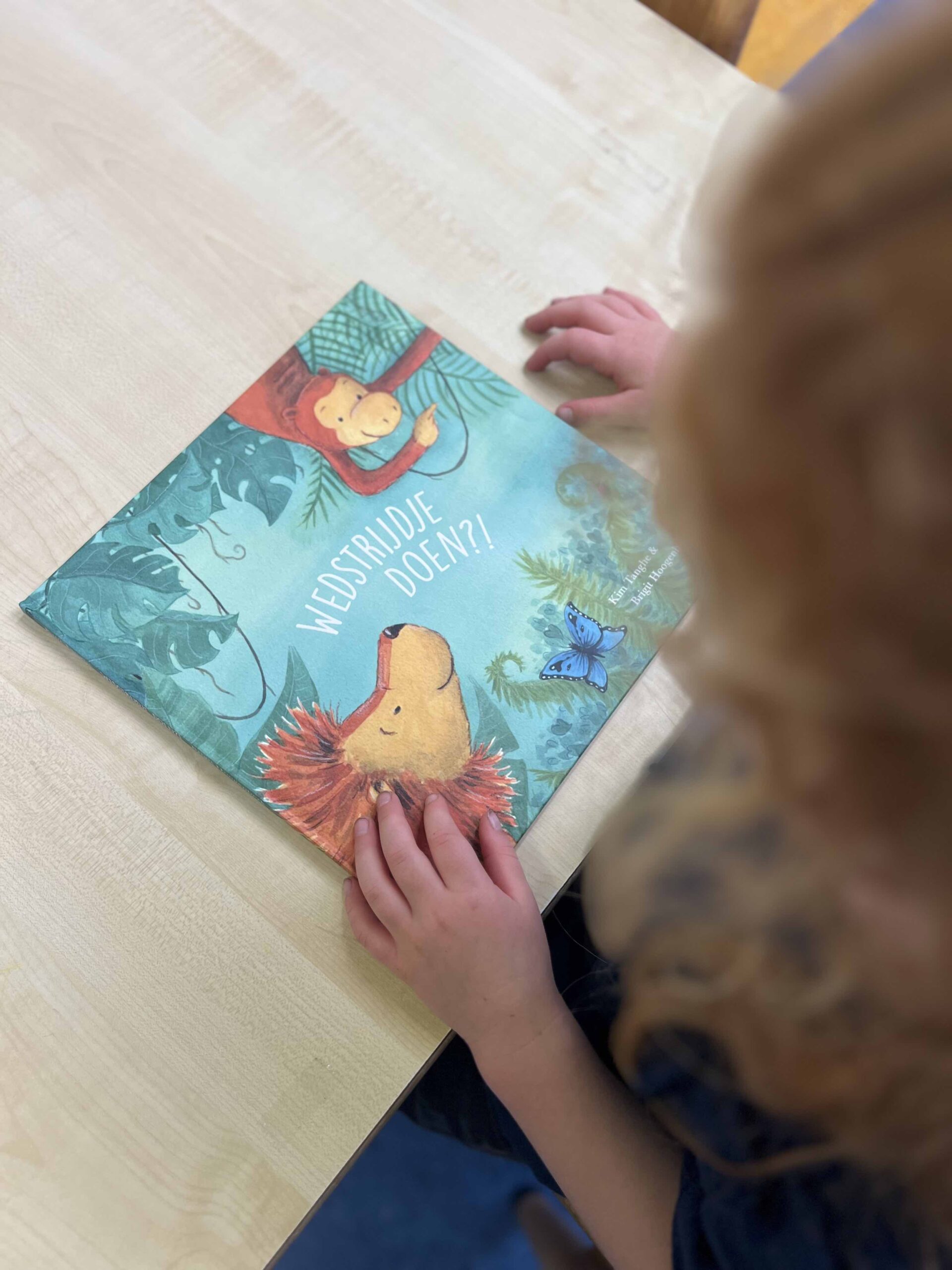 Ontdek het verhaal van Lou Aap en Lev Leeuw! Lou racet altijd vooruit, terwijl Lev alles op zijn eigen tempo beleeft. Wedstrijdje doen?! laat kinderen voelen dat er niet één juiste manier is om de wereld te ontdekken: je mag rennen, je mag stilstaan — je mag zijn wie je bent, op je eigen tempo!